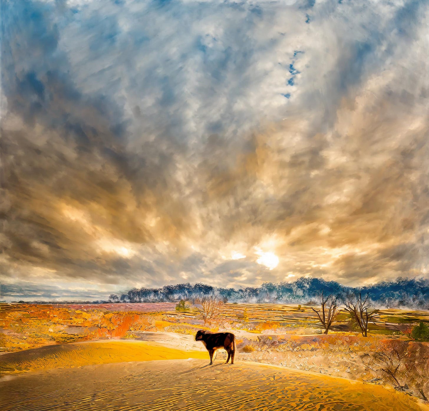The tightly packed dirt cracked under her boots. She scraped through dry brush and sharp waist-high branches for half an hour, circling her camp in silence. She shouldn’t call Vanessa like a dog, she thought. That’s just silly. Cows don’t know their names. The morning sky phased into an eggshell blue all around her now, only illuminating more of the same. How far could a cow get in an open field?